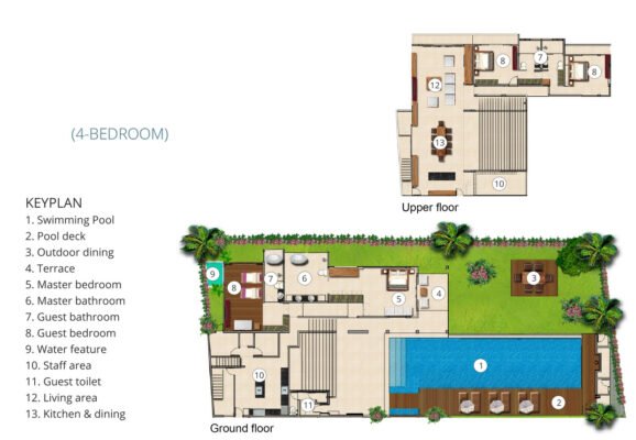 Need more space? Combine with the connected 2-bedroom sister villa to create a 6-bedroom estate with two pools, two living areas, and double the fun.