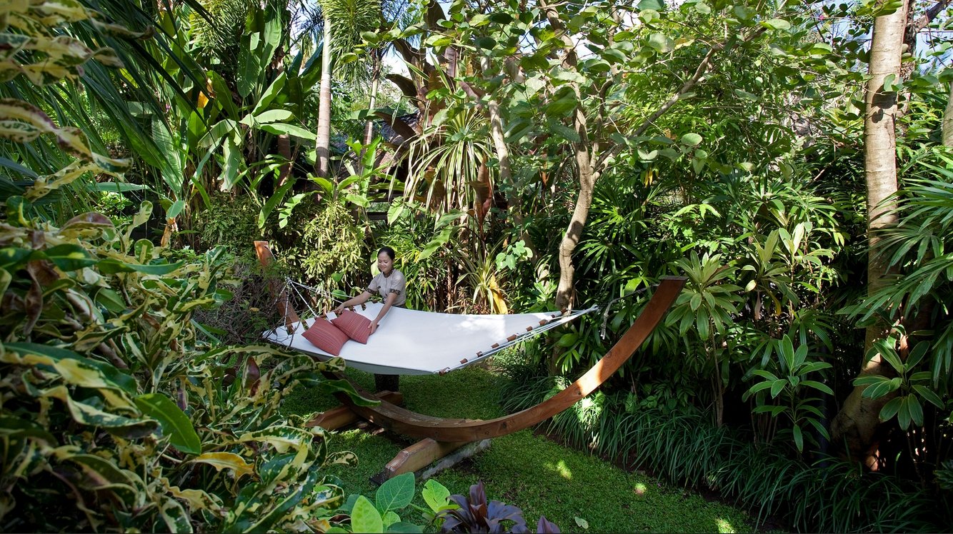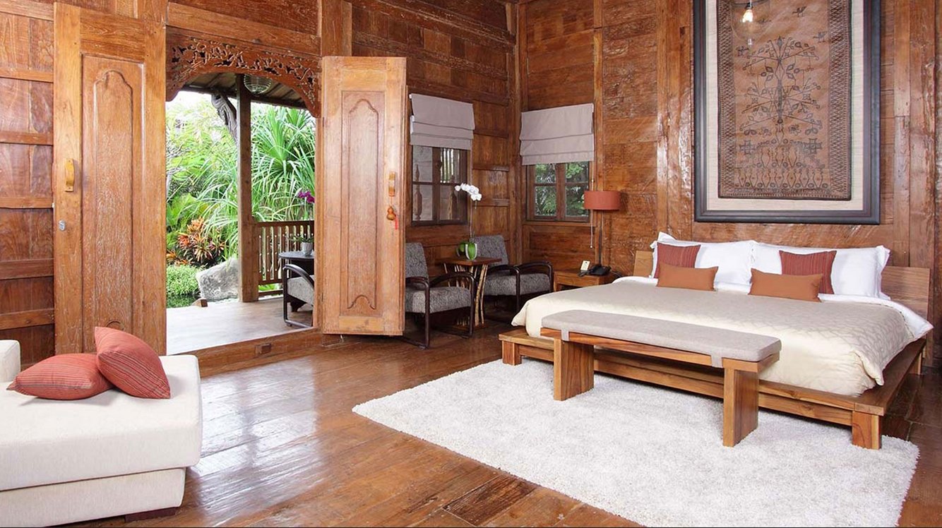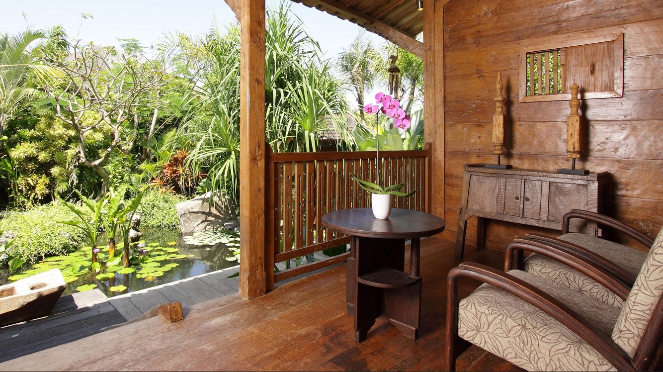 Wake up in a king-size bed and enjoy your morning coffee in the quaint gladak pavilion overlooking the lush gardens. A tropical open-air bathroom connects both the dressing area and the small, functional kitchenette—ideal for light snacks and drinks. Step outside to a plunge pool surrounded by greenery and unwind in the shaded poolside bale.
