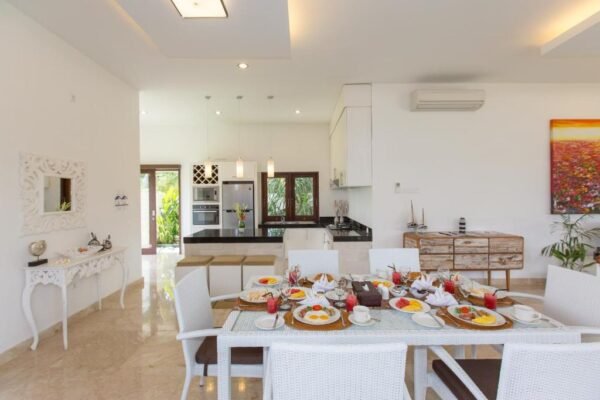 Welcome to your peaceful hideaway in Canggu – a 3-bedroom private villa designed for those who want calm serenity, yet just minutes from Bali’s most vibrant dining, beach, and nightlife scenes. Nestled near Finns Recreation Club and within a short drive to Berawa Beach and Seminyak, this villa is perfect for families or groups seeking the best of both worlds.
