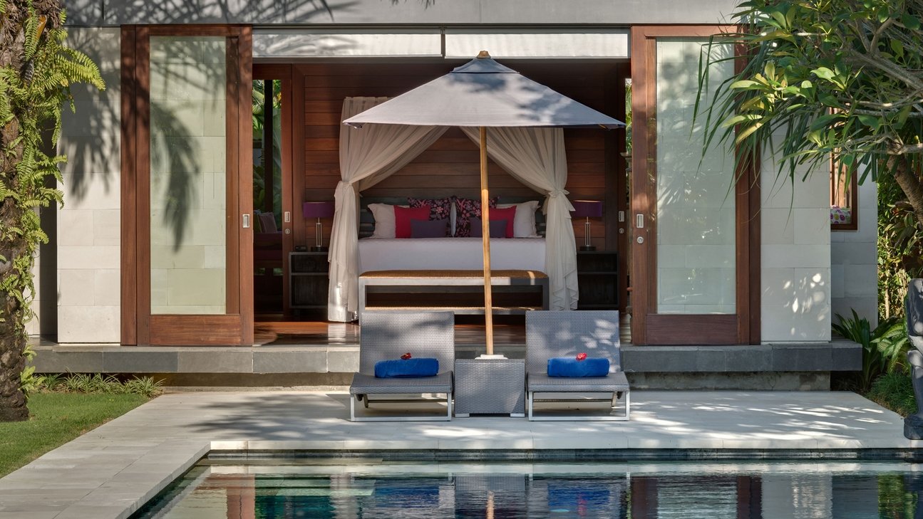 - Optional Master Suite – Private entrance, 7m plunge pool, sundeck, garden balé, indoor & outdoor bathroom, minibar & entertainment system.