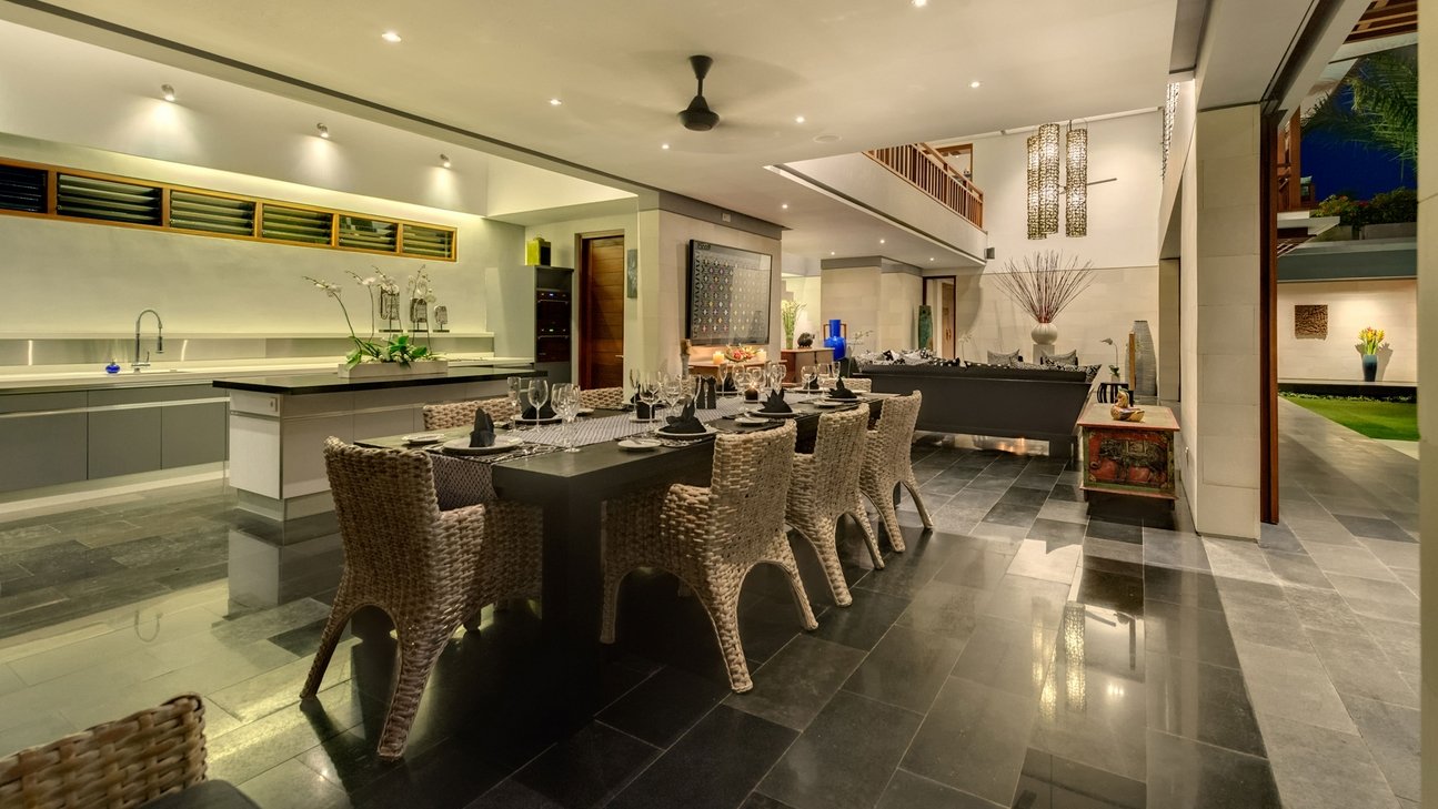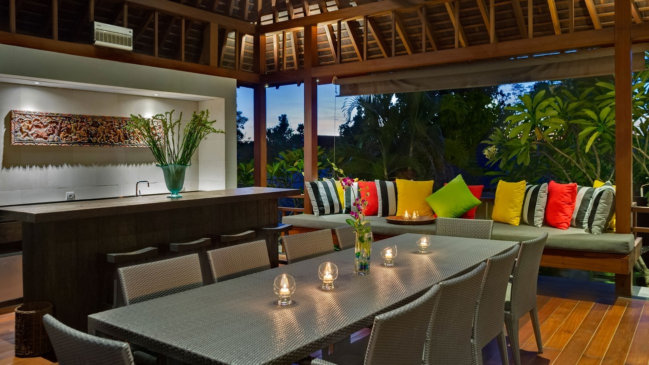 - Open-plan living pavilion with dining for 12 guests