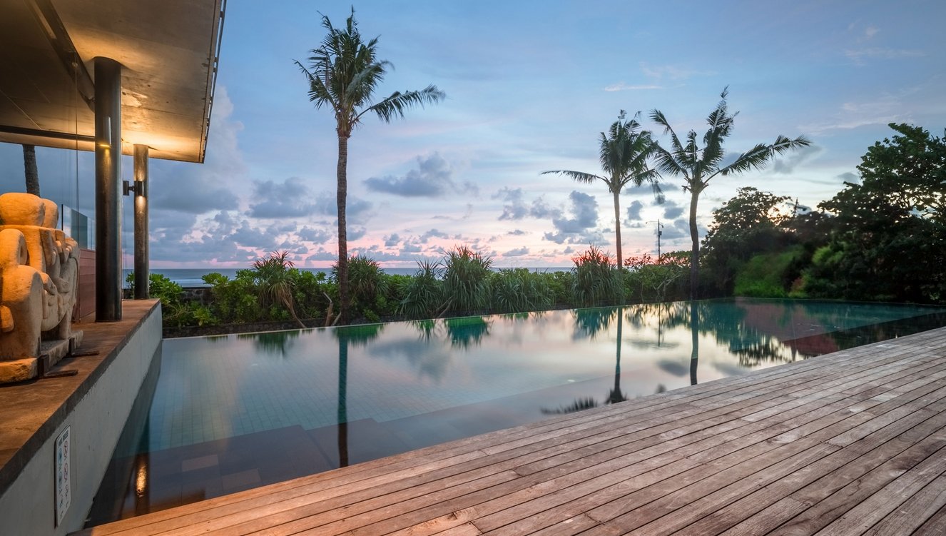 The villa is a divine residence of contemporary design and fabulous living set in a tropical utopia. Recline in the architectural beauty and balance of this beachfront retreat on Bali’s chic sunset coast in chic Canggu.