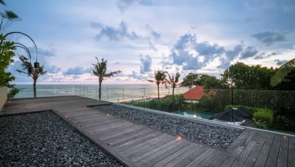 Set in a lush tropical paradise on Bali’s chic sunset coast, this 5-bedroom beachfront villa is a modern sanctuary of luxury, indulgence, and unforgettable views. With a 20m pool, private tennis court, full gym, in-villa spa, and space for up to 18 guests, it’s a dream retreat for families, groups, or special events.