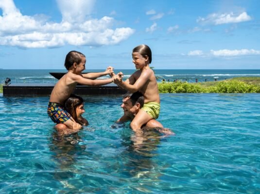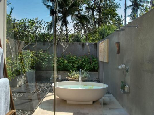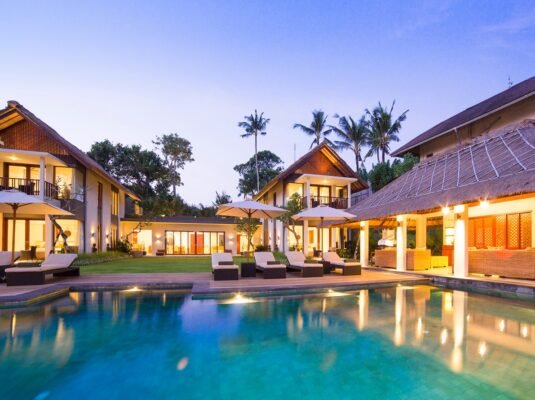 Just steps from the beach in the quiet coastal village of Seseh, this contemporary 5-bedroom villa blends clean architectural lines with tropical luxury. With a 17-meter swimming pool, rooftop sunset lounge, and both indoor and semi-outdoor living spaces, itโs a stunning setting for a relaxing Bali holiday or a private seaside event.