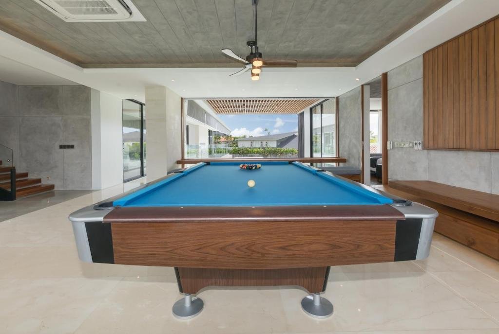 The villa is also completed with full furnished modern kitchen set, dining room, living room also full equipped entertainment room with home gym and International size of billiard pool table which will be fun for a family stay, kids and friends gathering villa.