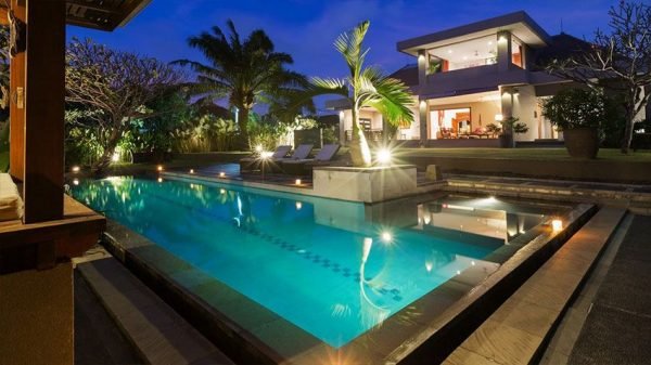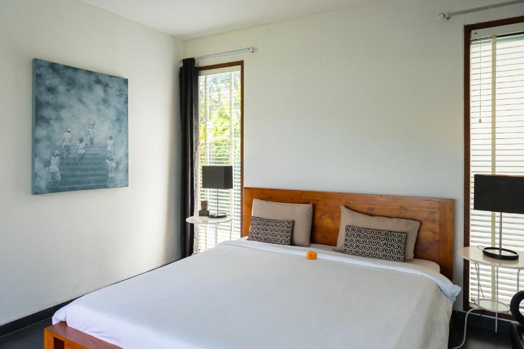 Just off the main road to Canggu, on a small lane nestled up to fields of rice paddies which seem to stretch all the way to the ocean sits The Villa, a simple modern villa that opens out onto a large grassy garden and pool.