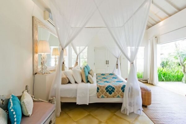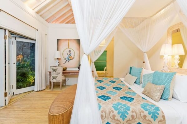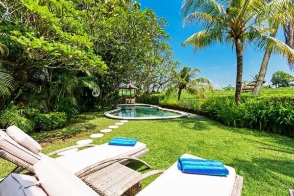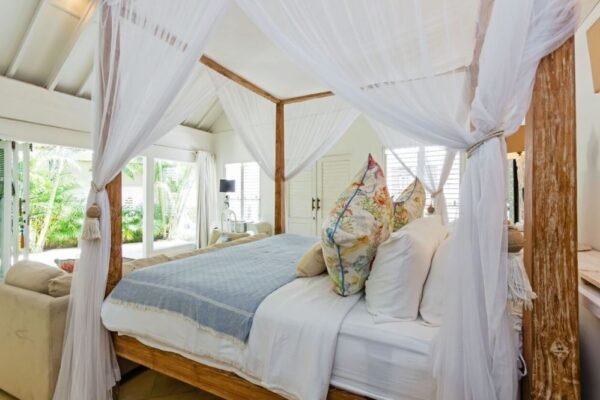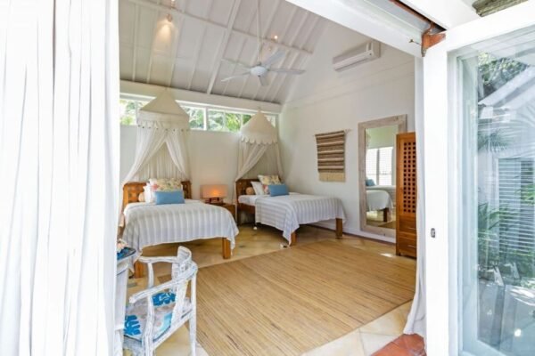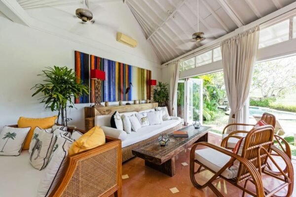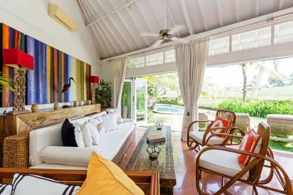 Welcome to a dreamy escape in the heart of Canggu, where shabby chic style blends perfectly with the serenity of Bali’s iconic rice fields. This beautifully designed 4-bedroom villa offers the ideal mix of privacy and togetherness, with each bedroom set in its own private pavilion — perfect for families or a group of friends looking to reconnect in a peaceful paradise.
