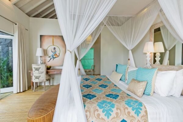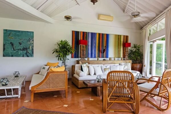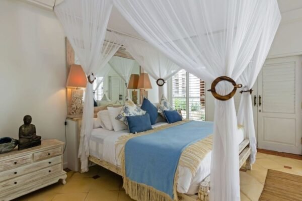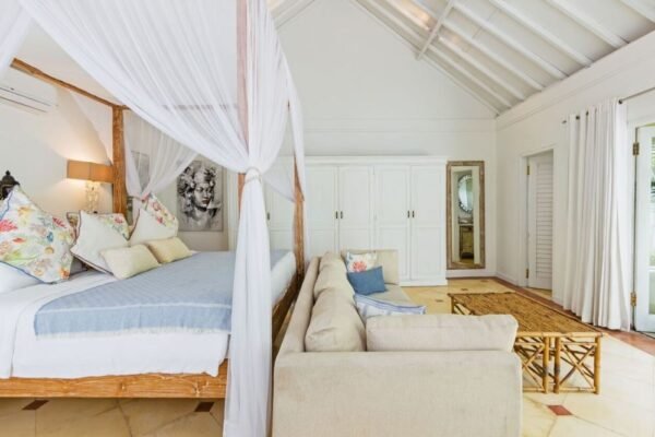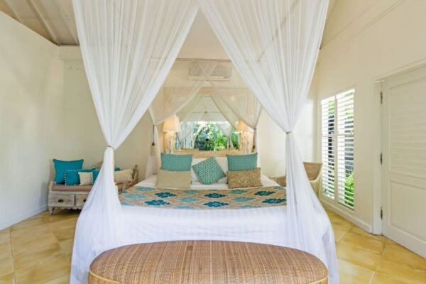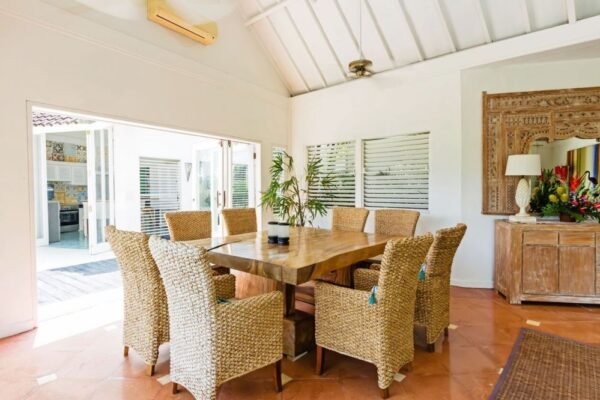 Each of the four bedrooms is housed in its own separate building for ultimate privacy and comfort. All bedrooms are air-conditioned, feature mosquito nets, and are thoughtfully styled with rustic-chic decor. With ensuite bathrooms and cozy interiors, you’ll feel completely at home.