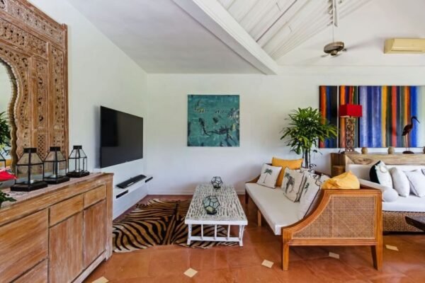 Inside, the villa offers a fully equipped kitchen for self-catering or meals prepared by a private chef (on request). There’s a comfortable living area with cable TV, fast Wi-Fi, and everything you need for a cozy evening in.