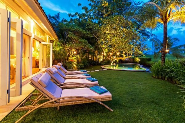Shabby chic meets stunning rice fields in glorious Canggu. Peaceful serenity of 4 individually housed bedrooms for complete privacy while still enjoying a combined holiday. Manicured grounds with large oval pool with garden lighting that creates a fairytale environment. Must be seen to be believed