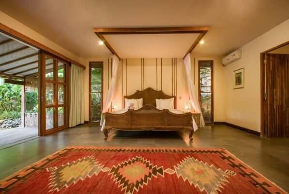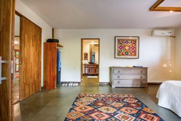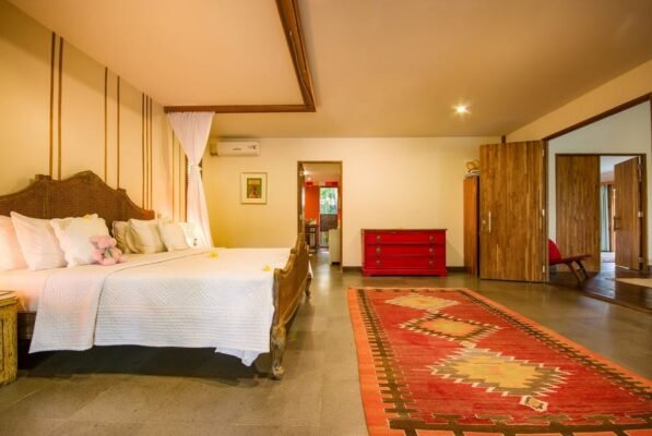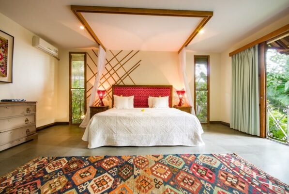 With colorful rugs, bright wall hangings, and vibrant artwork each bedroom is a sight to behold. The king-sized beds are lavish and luxurious, perfect for a lie-in when you’re feeling lazy and would rather stay indoors.