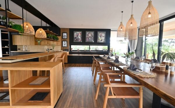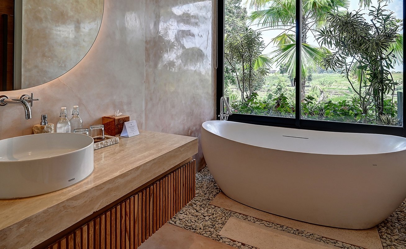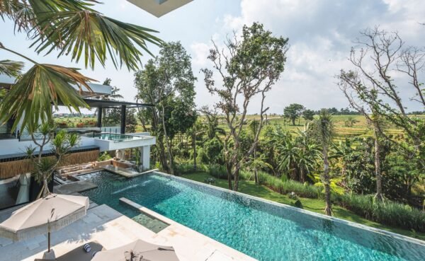 Completed in 2023, this contemporary tropical villa blends sleek architecture, natural materials, and curated Indonesian art to create an unforgettable escape. Spanning two wings, the property offers vast indoor-outdoor living spaces perfectly oriented to sweeping rice field vistas.