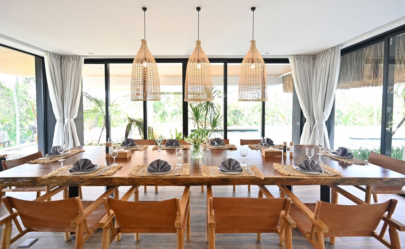 Start your mornings with yoga on the riverside lawn, take a dip in the 25-metre saltwater infinity pool, then swim up to the bar for a smoothie. Sunbathe on double loungers, cool off under the water cascade, or enjoy a long, lazy lunch served by your butler at the 4.4-metre dining table. As evening falls, gather for sunset cocktails in the soaring open-sided living pavilion or settle into the sunken pool lounge for a chef-prepared seafood barbecue.