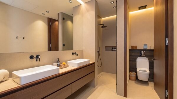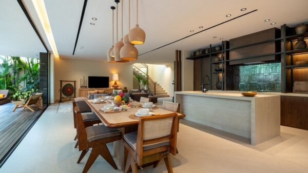 Tucked away in Berawa, Canggu, this chic 4-bedroom villa offers a tranquil coastal escape just moments from the beach. Perfect for families or groups, the villa combines modern design with tropical charm, creating a serene environment while keeping you close to Berawa’s cafés, shops, and beach clubs.