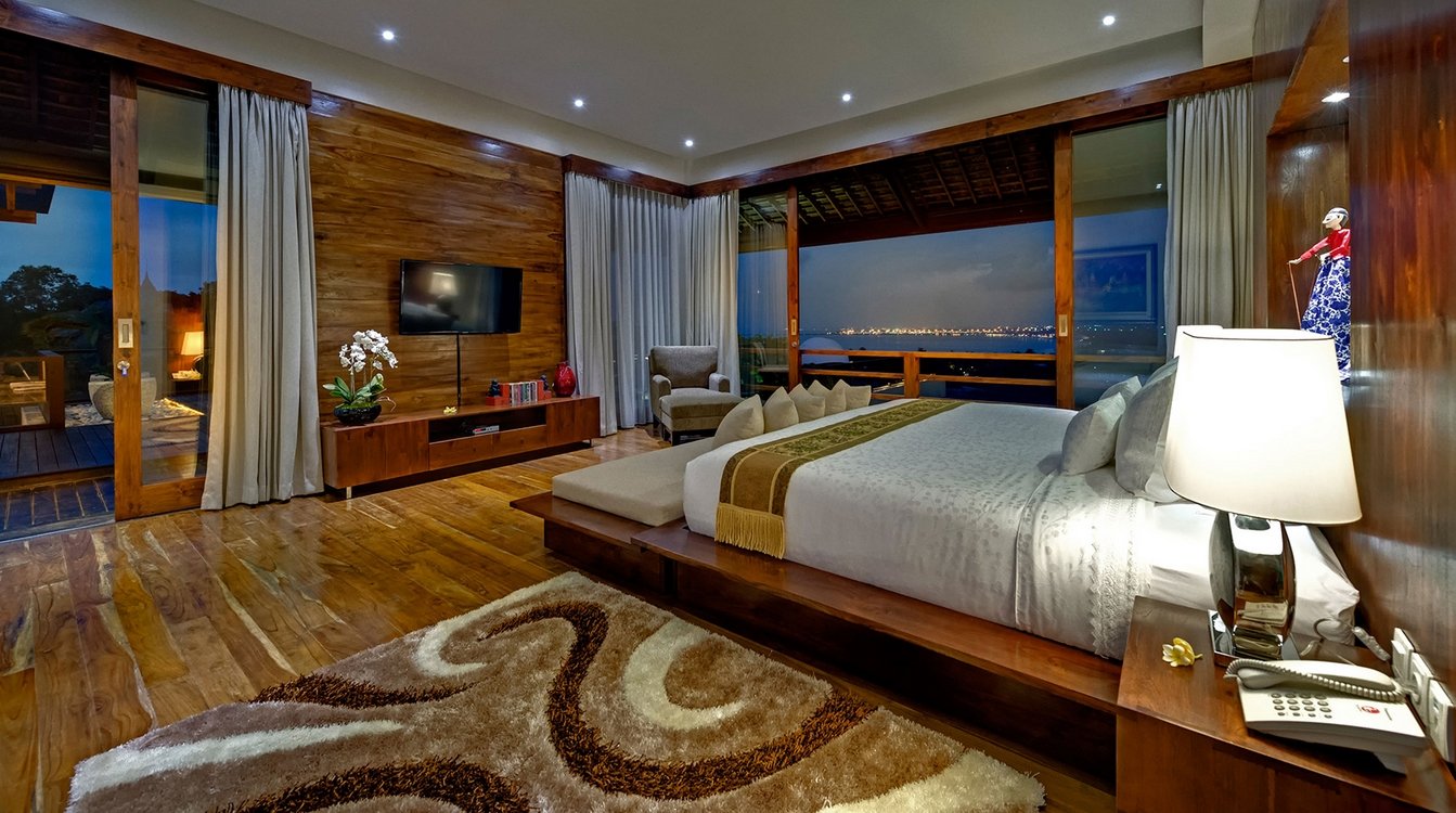 The villa is a stunningly designed contemporary villa with sweeping views over Jimbaran Bay from its prime hilltop location. East meets west as traditional Balinese features fuse deliciously with marble, granite and local woods.