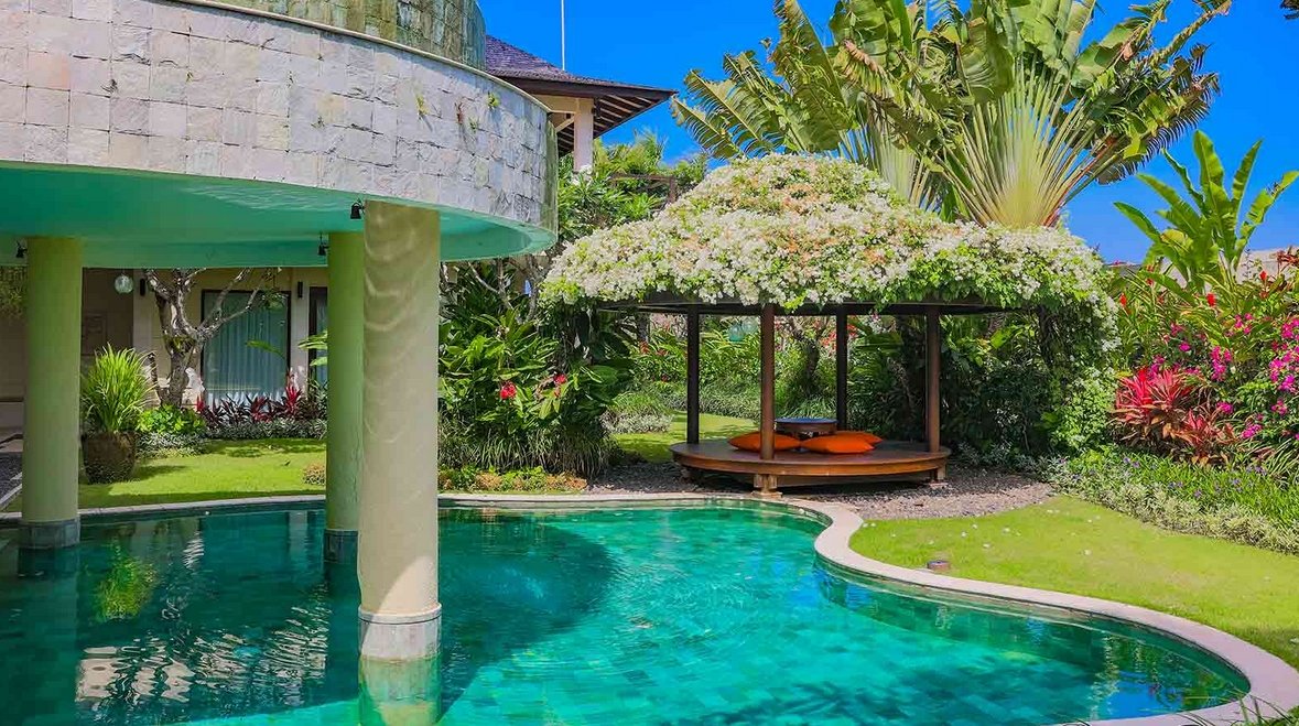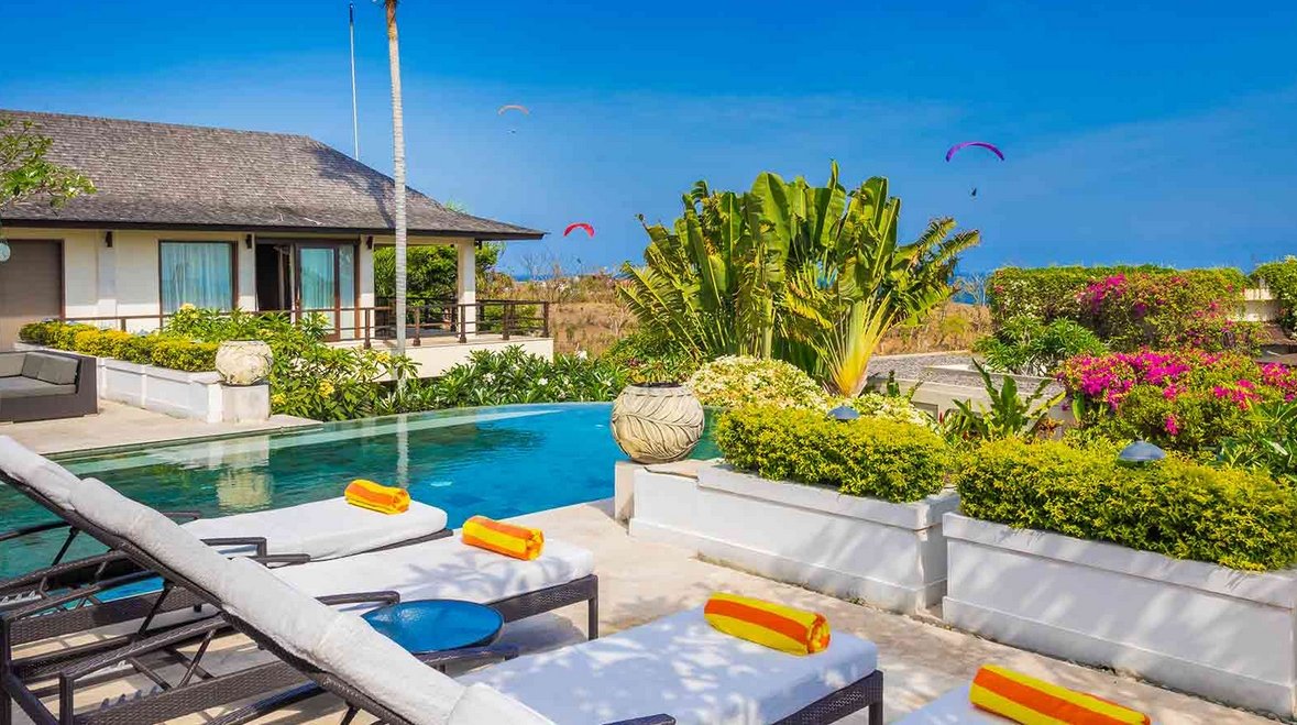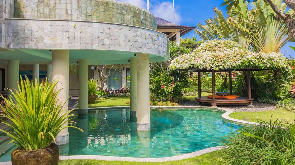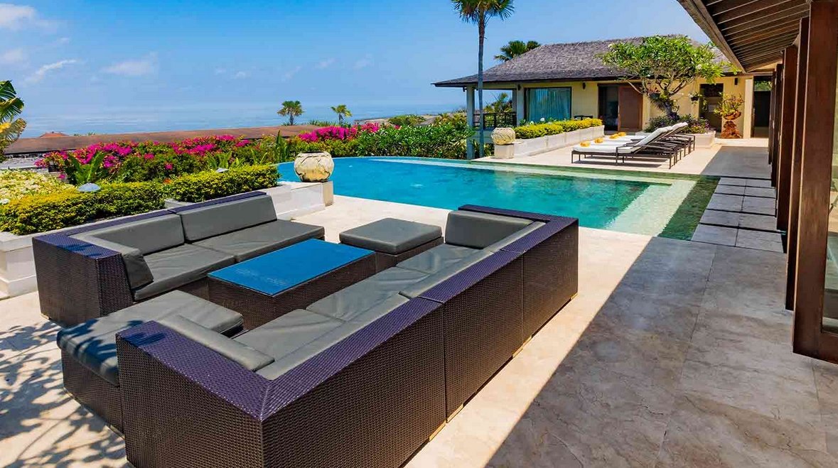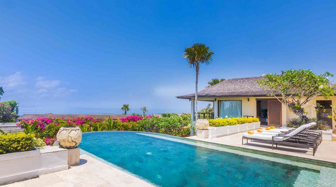 The sumptuously designed, fully staffed the villa rests atop a bluff with panoramic views of the sea. It is located just four kilometres from the sweeping sands of Pandawa Beach on the Bukit Peninsula in South Bali, and comes equipped with six ensuite bedrooms, two swimming pools, private gym, massage room and expansive indoor and outdoor living spaces.