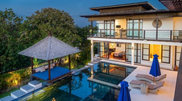 Nestled in a peaceful and secure villa complex in the hills of Jimbaran Bay, this stylish 4-bedroom villa offers breathtaking ocean views, spacious living areas, and a full suite of entertainment options — perfect for families or groups seeking a luxurious escape near Bali’s iconic beaches and seafood spots.