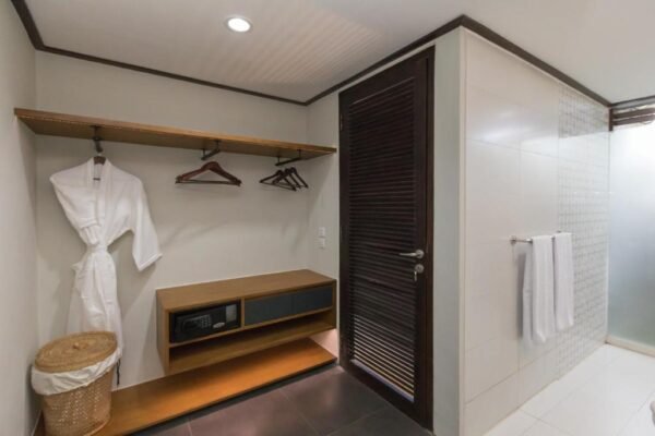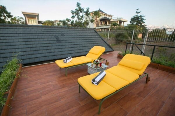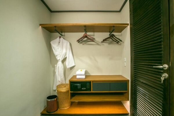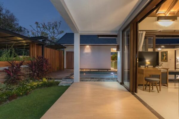 Prepare your meals in the designer kitchen equipped with a stove, microwave, refrigerator, and cold water dispenser. Enjoy high-speed Wi-Fi throughout the villa, mosquito protection (racquet, coils, lotion), and bath amenities including bathrobes, slippers, and hairdryers.