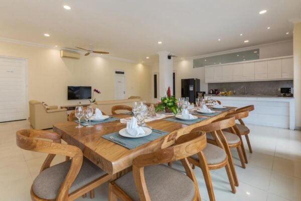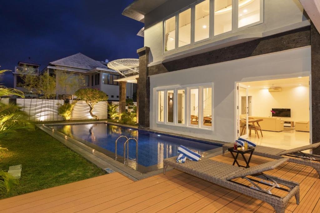 5 bedroom Jimbaran Villa offers a private outdoor pool and daily hospitality service. Conveniently located on Jimbaran Hills. Featuring wooden and modern furnishings, Villa has its own garden, sun deck, and spacious balcony for a private party or family gathering. It also has a kitchen and living area, plus amenities like a flat-screen TV , free wifi all villa area and safety deposit box.