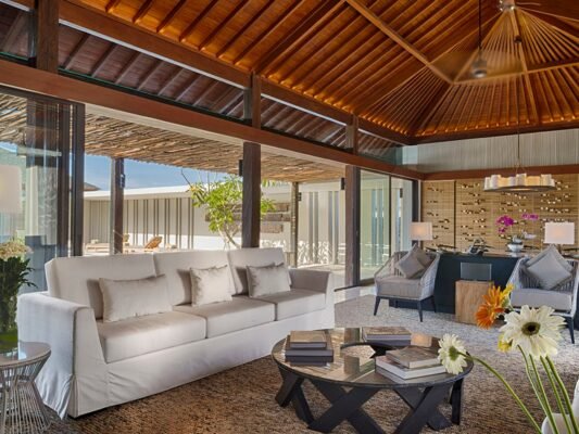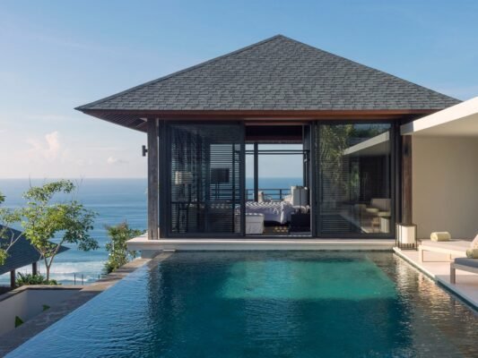 Perched high on the Bukit Peninsulaβs cliffs, this 5-bedroom retreat blends contemporary design with breathtaking panoramas of the Indian Ocean. From the moment you step through the grand ironwood doors, youβre welcomed into a sanctuary of elegance, space, and serenity.
