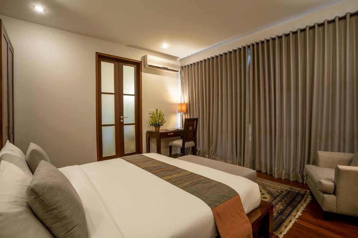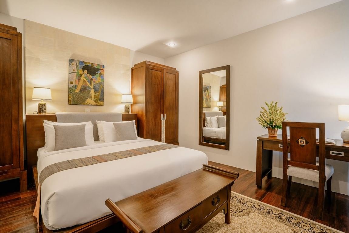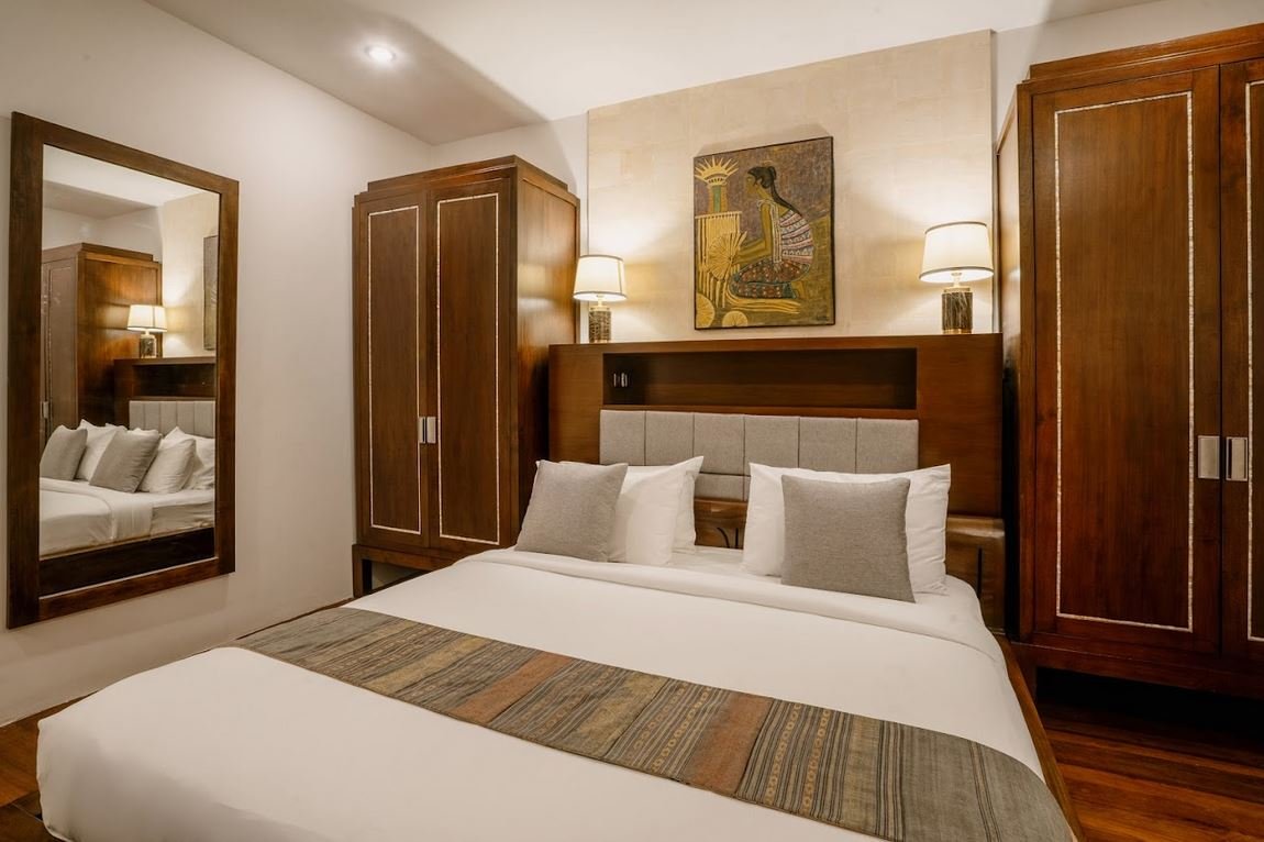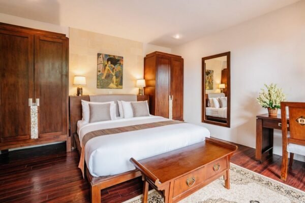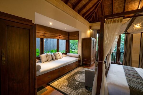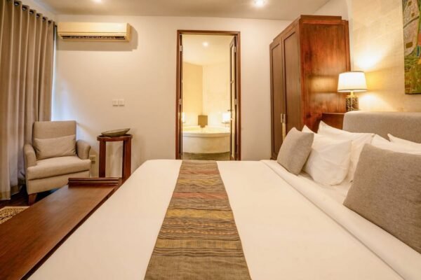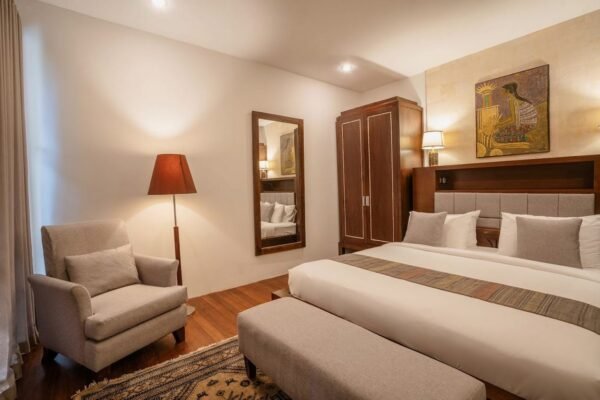 Each room combines comfort with subtle luxury, using natural wood tones, high ceilings, and soft lighting to create a peaceful atmosphere.