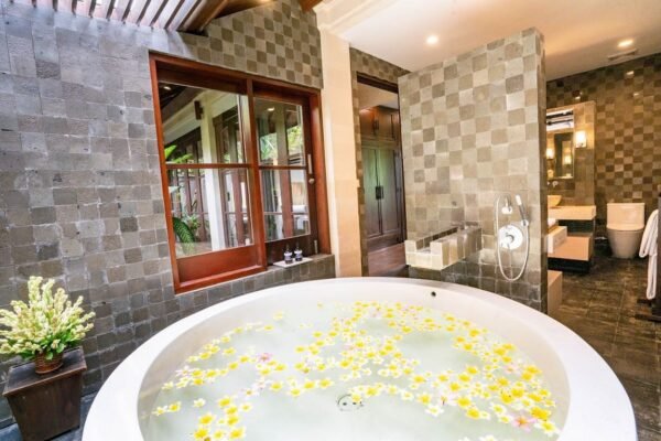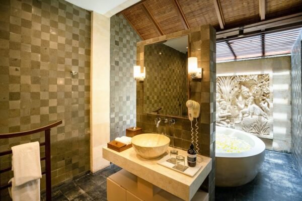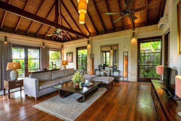 Nestled in a quiet lane near Jimbaran Beach, this spacious 3-bedroom villa blends traditional Balinese architecture with modern comfort.