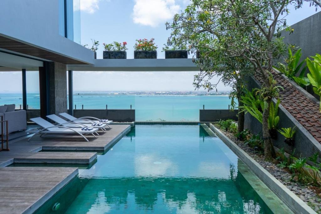 Perched on the cliffs of Jimbaran, this stylish 3-bedroom villa offers sweeping sea views and a modern tropical design that blends indoor comfort with open-air living. Ideal for families or small groups seeking peace, space, and a touch of luxury.