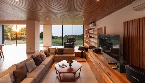 From the charming entrance, the villa unfolds into a stylish sanctuary. A tranquil fish pond welcomes you at the lobby, while generous storage keeps the living area clutter-free. A wide balcony extends from the main floor, offering sweeping views of the surrounding landscape. The villa spans two interconnected stories, with a staircase ensuring seamless flow between spaces.