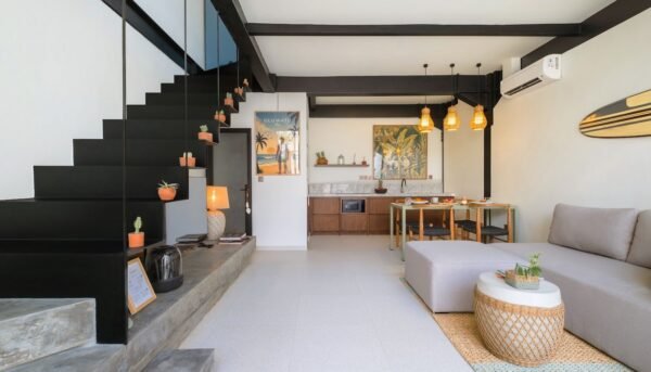 Escape to a stylish one-bedroom villa in Bingin, where modern design meets relaxed tropical charm. Just minutes from pristine beaches, trendy cafés, and vibrant local hotspots, this villa offers the perfect hideaway for solo travelers, couples, or friends seeking a private and cozy escape. Every corner has been thoughtfully curated to create a soothing, minimalist environment while keeping the fun, laid-back island vibe alive.