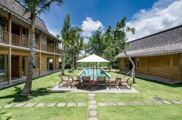 Nestled in the serene heart of Kerobokan’s rice terraces, this traditional Joglo-style 5-bedroom villa combines rustic Balinese charm with modern comforts. With a 15-meter pool, lush gardens, and full staff, it’s a perfect retreat for families or groups just 10 minutes from the buzz of Seminyak.