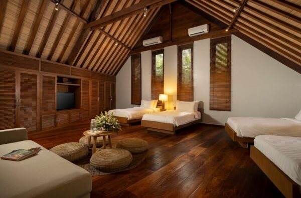 Each of the seven bedrooms is thoughtfully designed with natural materials and warm tones to create a peaceful, homey feel.
