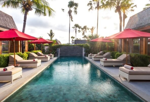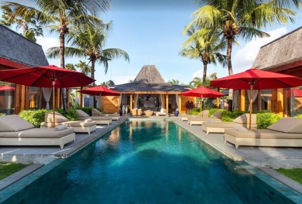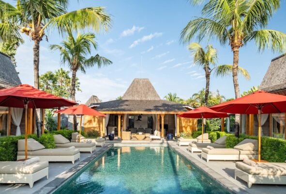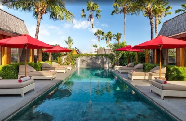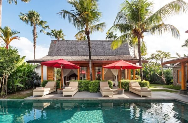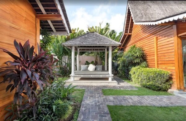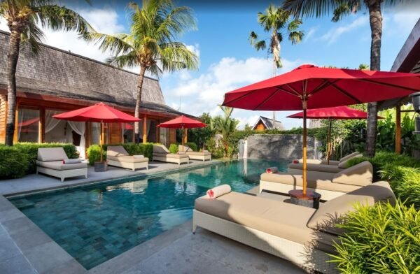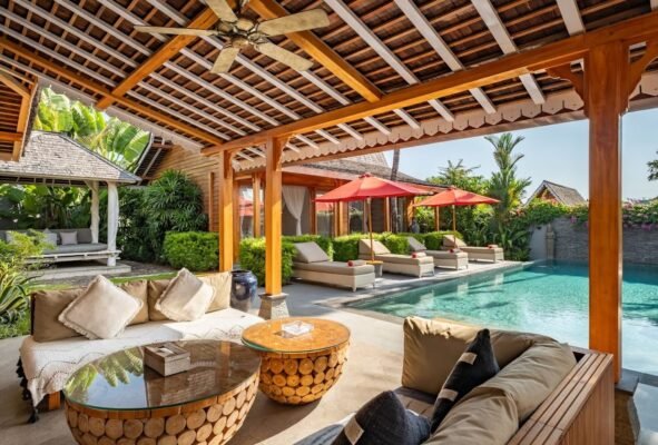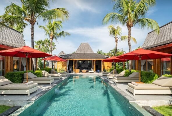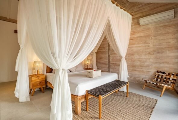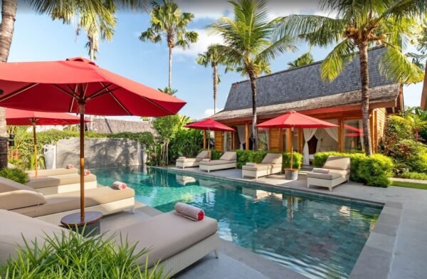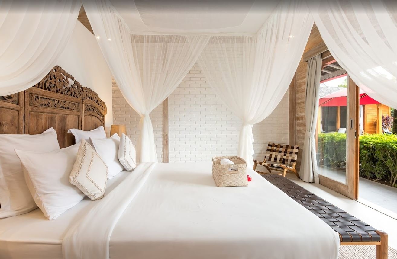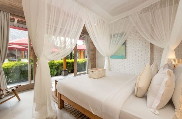 The villa has four bedrooms – housed in two separate pavilions on both sides of the swimming pool. Two of these bedrooms have draped king-sized beds while the other two bedrooms have draped twin beds that are joined together. All bedrooms also have dedicated bathrooms with rain showers.