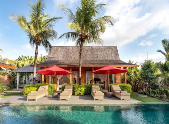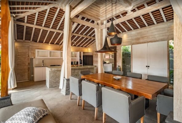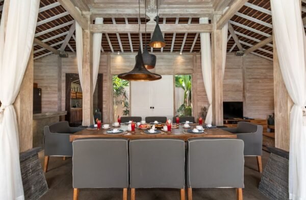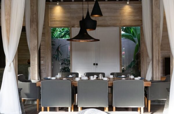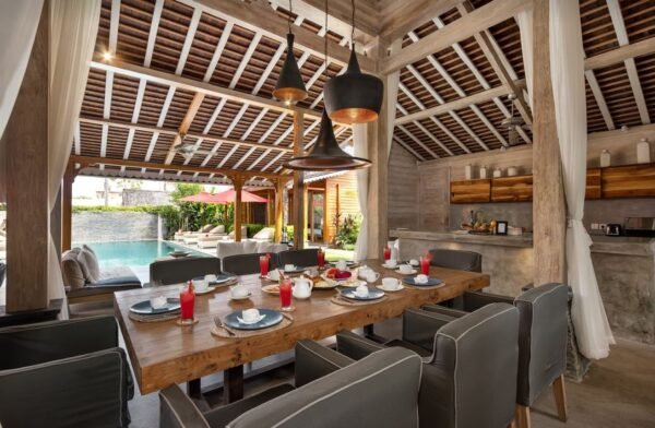 Villa is a vacation complex which consists of about three pavilions representing traditional Balinese architecture as shown by vintage Joglo style roofs. Interiors merge rustic, ornate and elegant solid wood appointments with chic, contemporary furnishings. Overall, amenities are of hotel and resort standard complemented by premium facilities for utmost pleasure and recreation. Set in the midst of Kerobokan’s renowned rice terraces, Viila provides you that well-deserved respite in a quaint and serene environment.