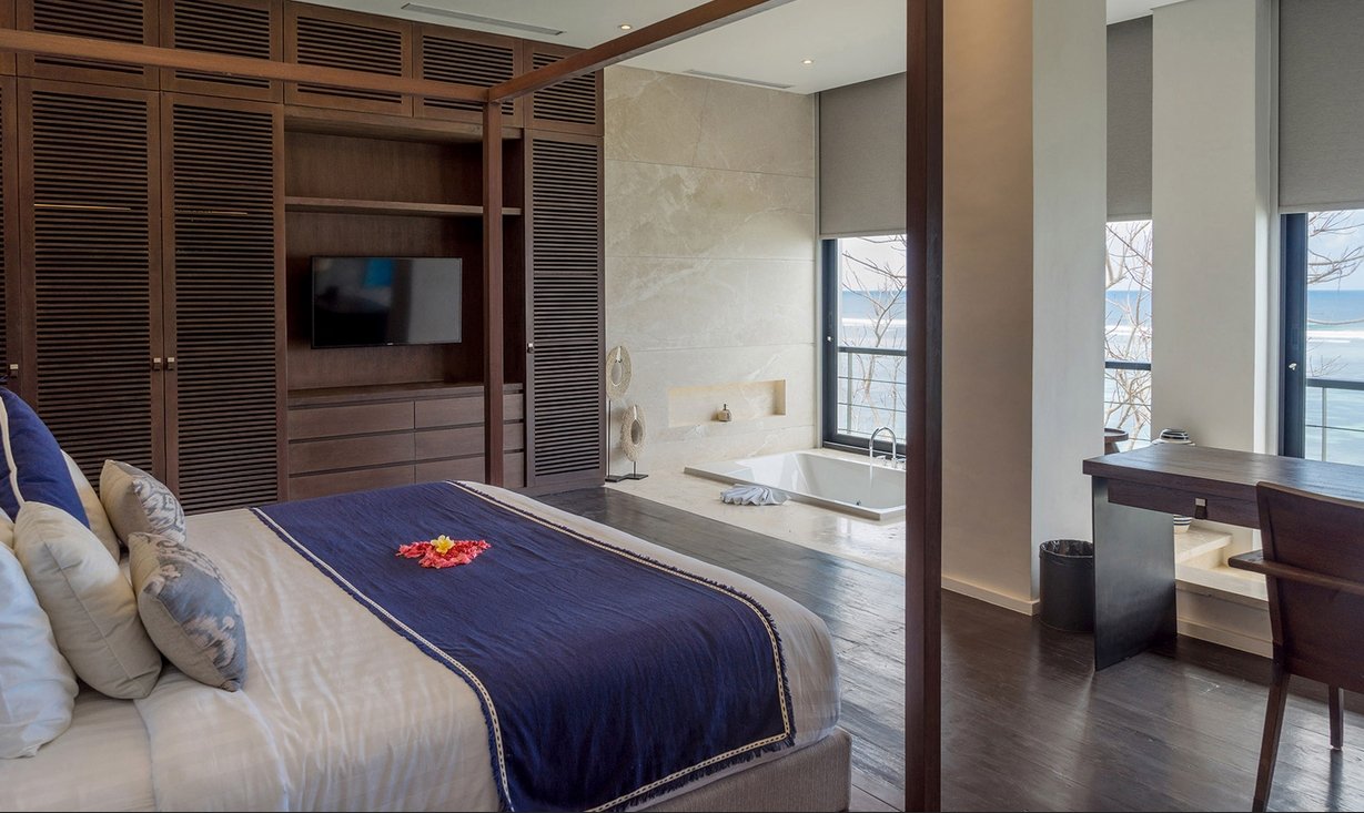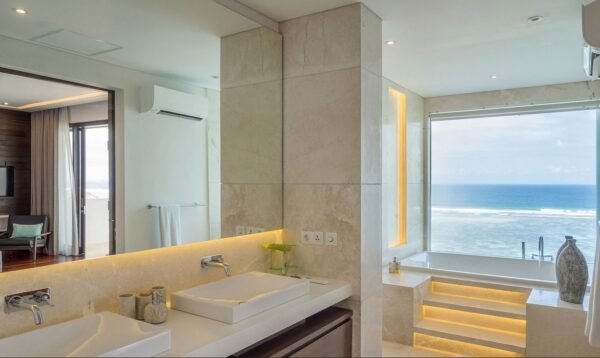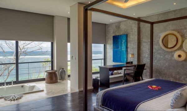 Welcome to a cliffside masterpiece in Bali’s prestigious Nusa Dua coastline, where panoramic ocean views, ultra-luxury facilities, and personalized service come together for the ultimate island escape. With five beautifully appointed suites—including a honeymoon-worthy master suite with private jacuzzi—this villa is designed for those seeking both indulgence and serenity.