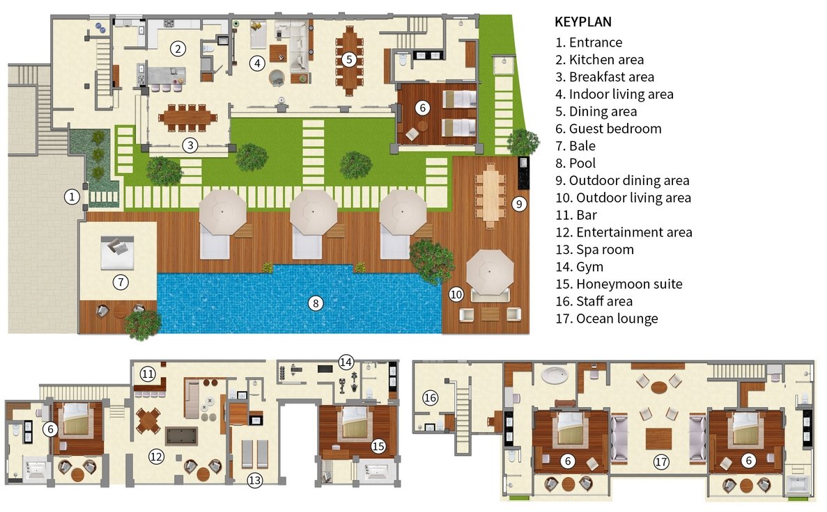 Personal service by the villa staff including a fulltime manager, housekeeper, security and attendants