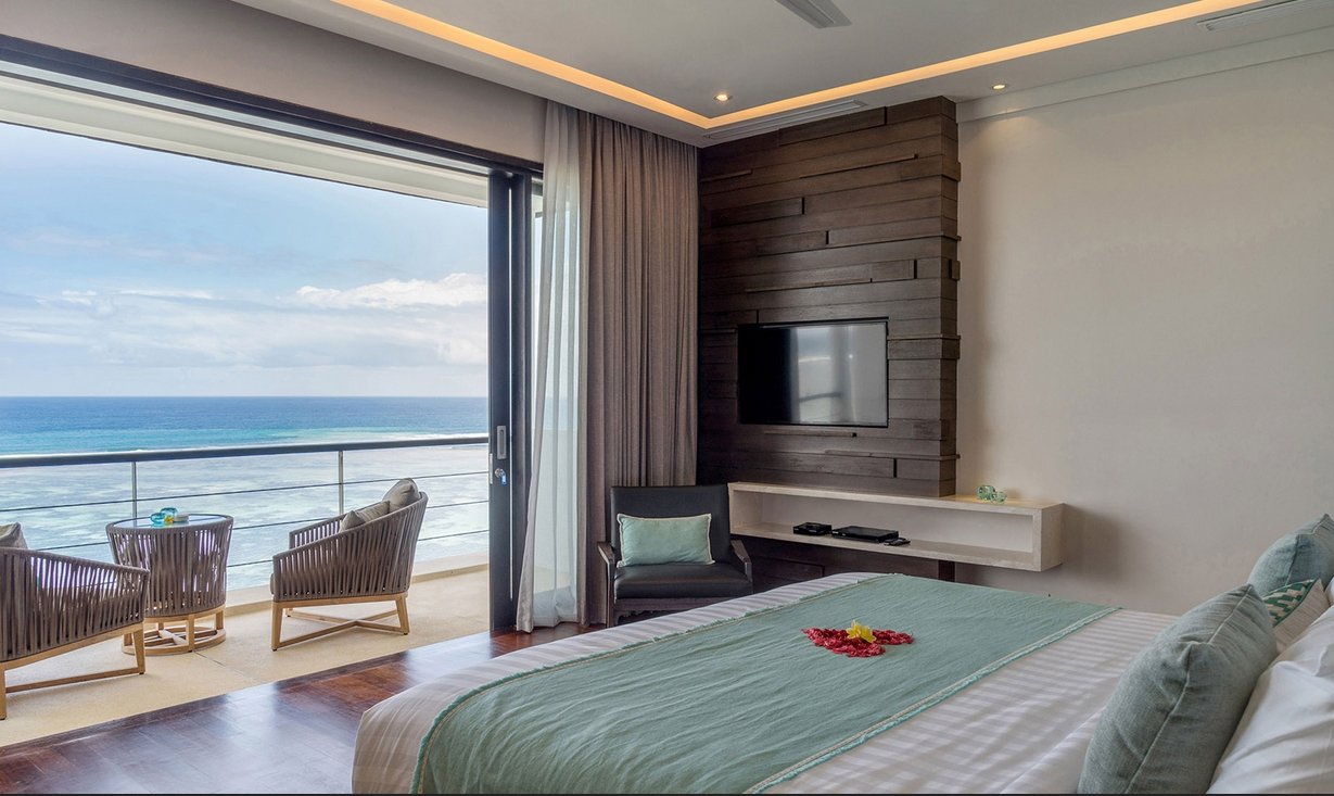 Each of the five spacious suites offers floor-to-ceiling ocean views, air-conditioning, plush king or twin bedding, and a 43-inch TV with Blu-ray player. Four of the rooms feature king-sized beds, and one offers twin beds—ideal for families with kids.