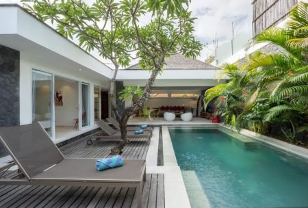 Villa is one of four holiday villas in a complex that is discreetly tucked away with a 2 minute walk to the beach in the Seminyak and Oberoi areas. Modern furnishing gives this private pool villa an easygoing vibe....