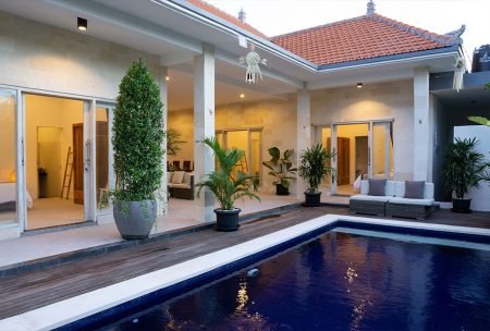 A modern villa nestled in the area of Seminyak Bali the perfect holiday home for small families and friends with a great set up, featuring a swimming pool, open style living room, kitchen and all necessary home...
