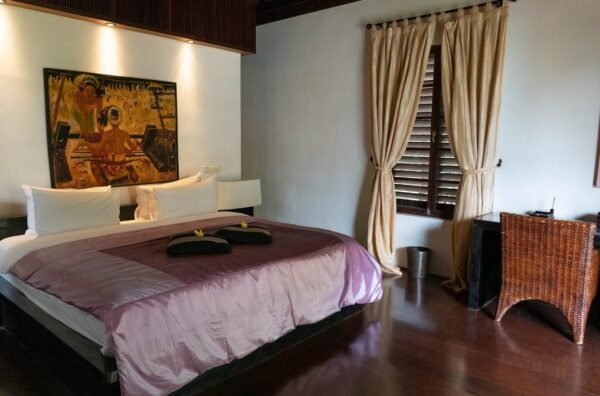 - King-size bed, air conditioning, rich teakwood interiors