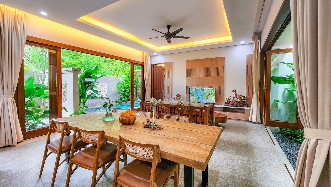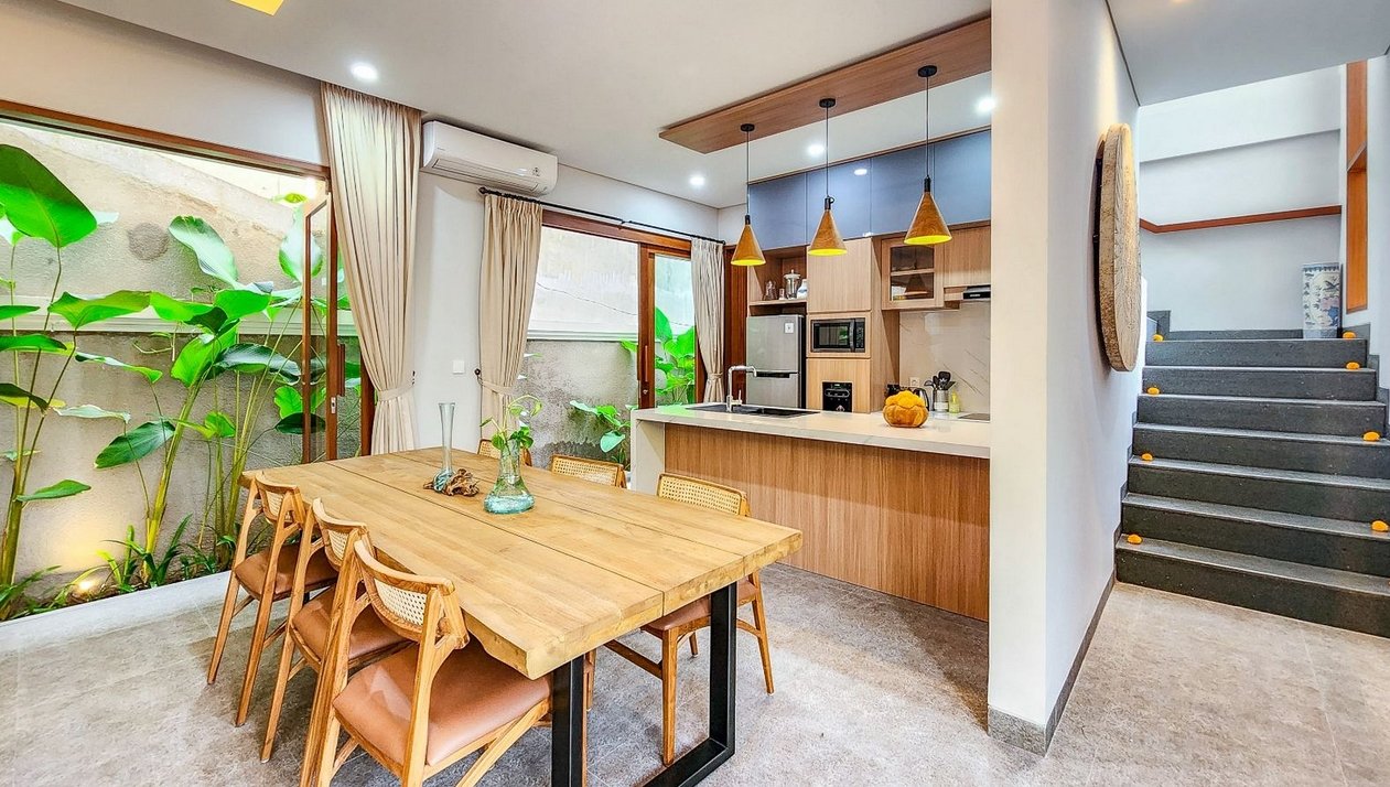 Step into your own private tropical sanctuary just minutes from Sanur Beach. This 3-bedroom villa blends modern Balinese architecture with warm, natural details—creating a perfect balance of comfort and island charm. High ceilings, open-plan living areas, and floor-to-ceiling windows allow light and greenery to flow in, while the serene garden and pool deck invite you to fully relax.