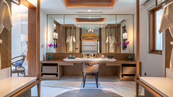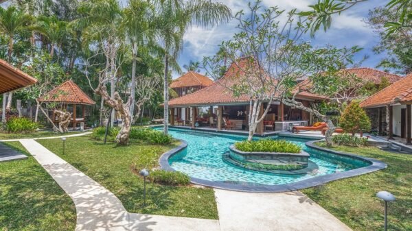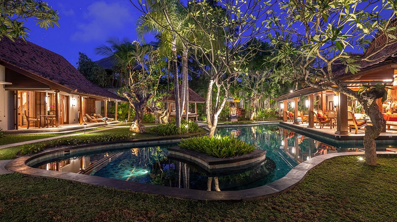 Contemporary luxuries abound, and the accomplished staff provides stellar service. Within the tropical gardens is a 21m lagoon-style swimming pool and traditional bale. With Petitenget beach a five-minute walk away, along with Ku De Ta, La Lucciola, and Bali’s best eateries, boutiques and spas, this is a perfect villa for families and friends.