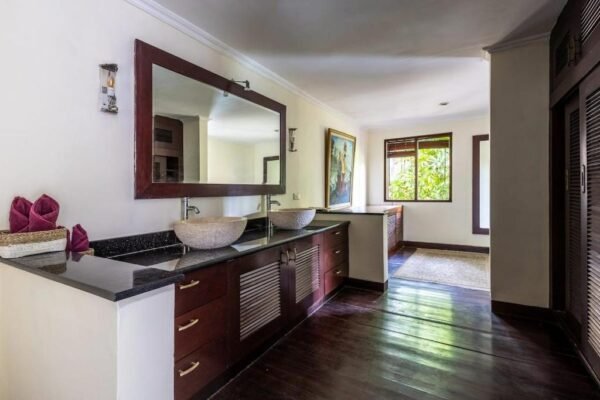 Welcome to your private Balinese paradise—a stunning 5-bedroom villa nestled within lush gardens, koi ponds, and elegant water features, yet just a short stroll from Seminyak’s buzzing cafés, boutiques, and beach clubs.