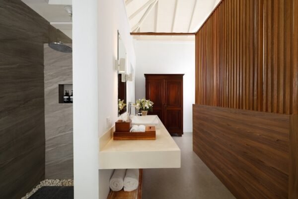 Designed with relaxation in mind, the five bedrooms are a perfect balance of modern comfort and Balinese aesthetic.