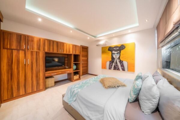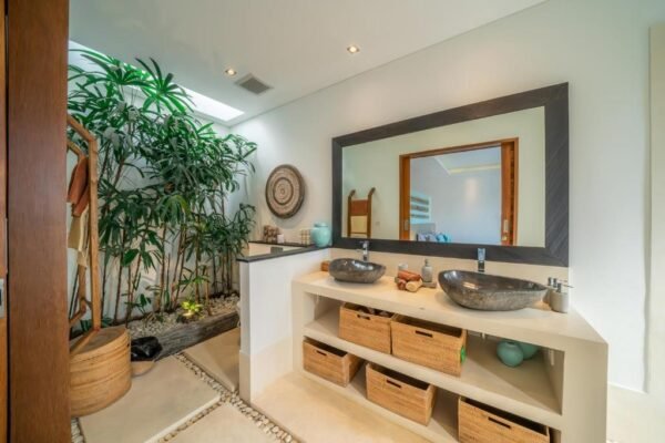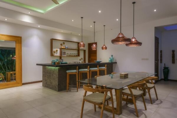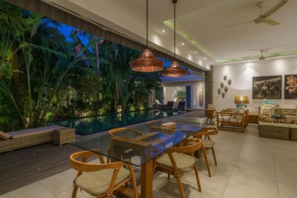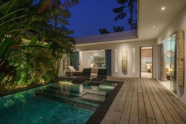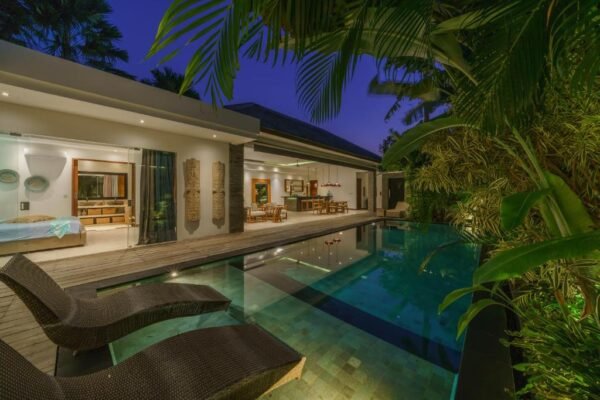 This modern 3-bedroom villa is your private retreat just 5 minutes from Seminyak Beach. With an uncluttered design, tropical garden setting, and spacious open living area, it’s the perfect balance of comfort, style, and location — ideal for families, couples, or friends traveling together.