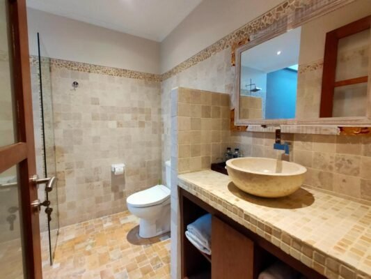 The three bedrooms provide a quiet and comfortable space to recharge after a day exploring Seminyak. Designed with privacy in mind, the villa ensures a peaceful and restful environment for all guests.