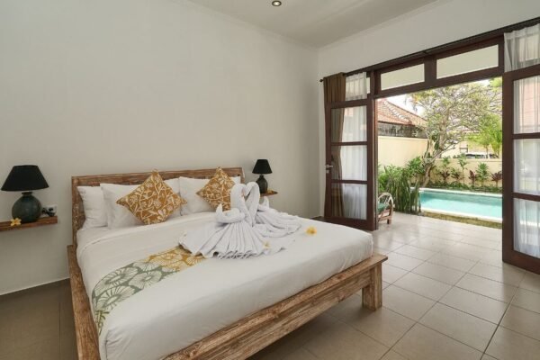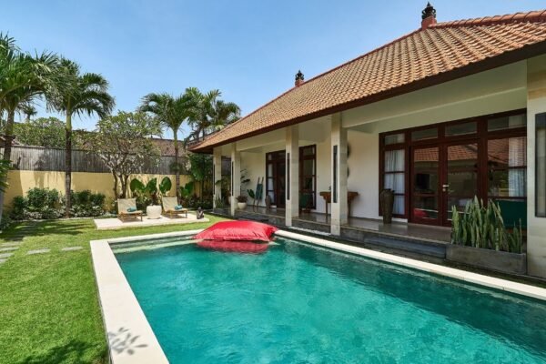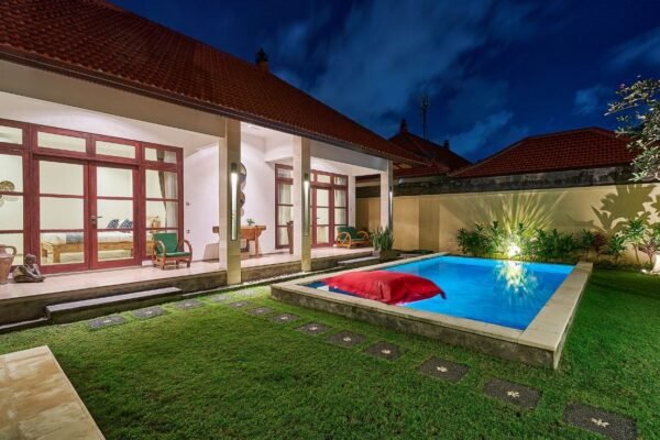 Nestled in a quiet location in the heart of Seminyak, this charming 2-bedroom villa offers the perfect blend of privacy and convenience. With five-star reviews, a private swimming pool, and all modern comforts, it’s the ideal stay for couples, friends, or small families looking to experience the best of Bali.