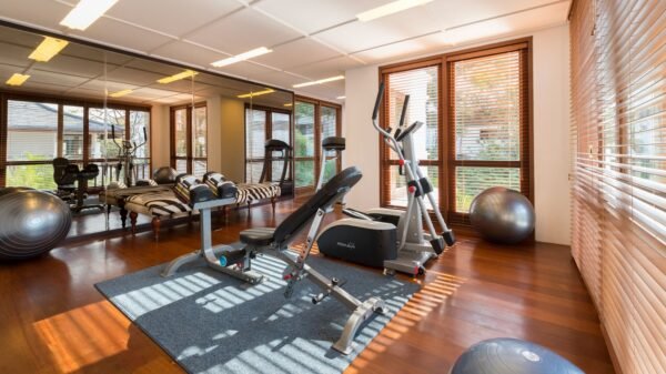 - Air-conditioned gym: bike, cross trainer, mats, light weights