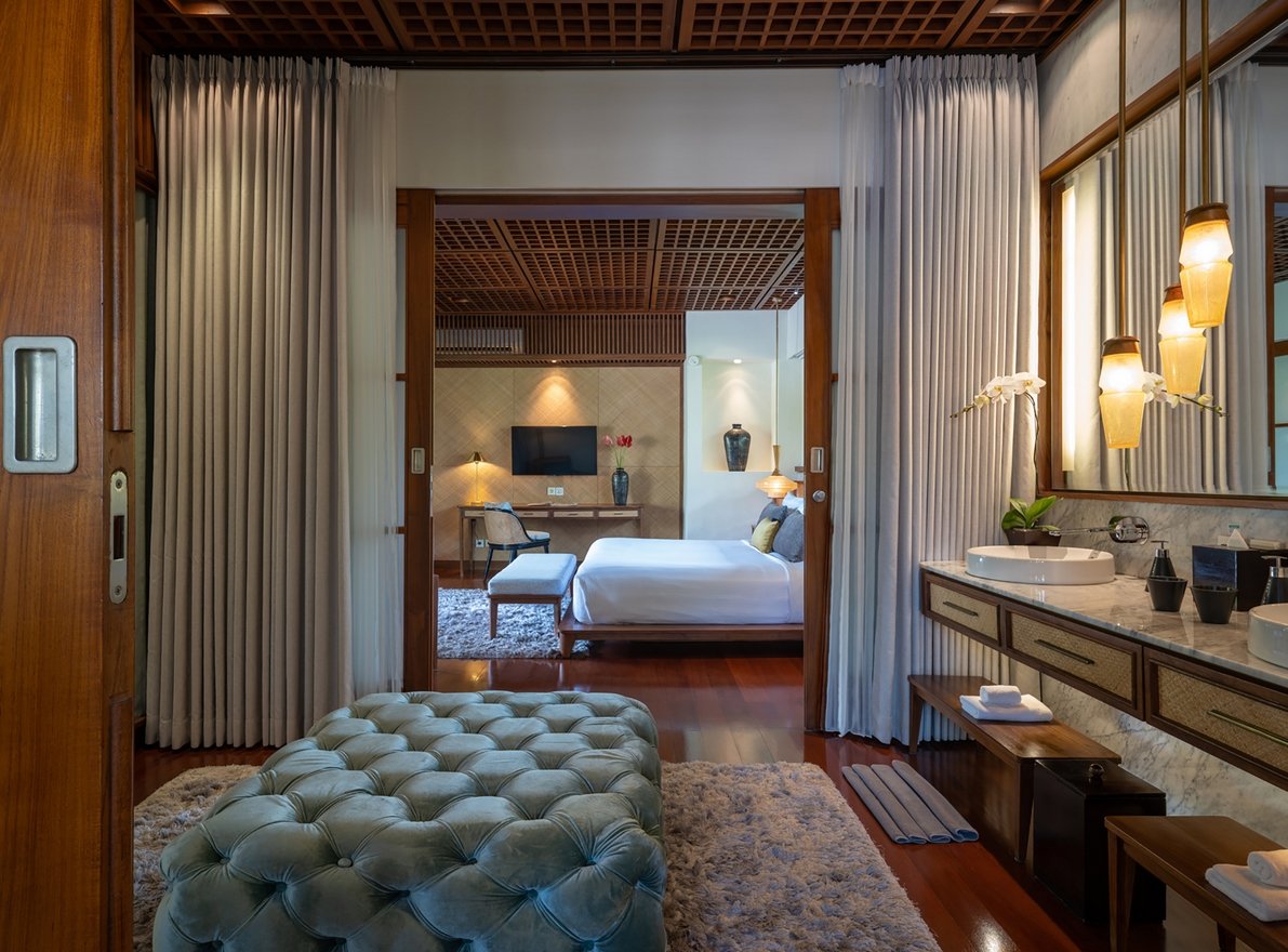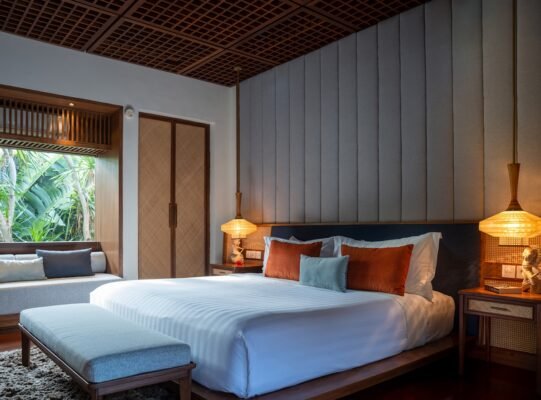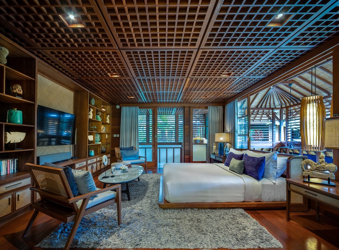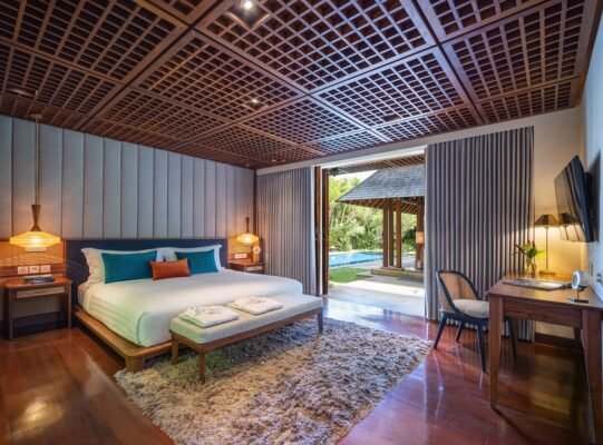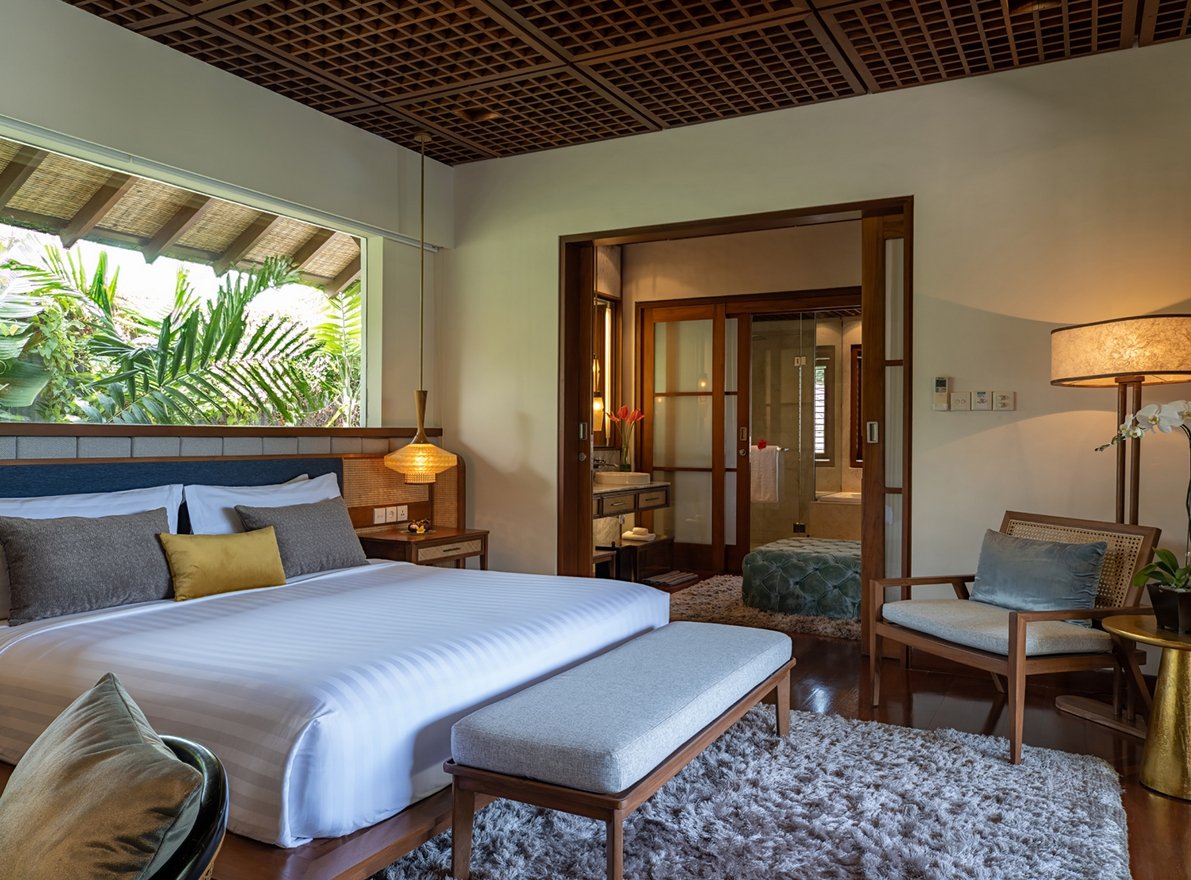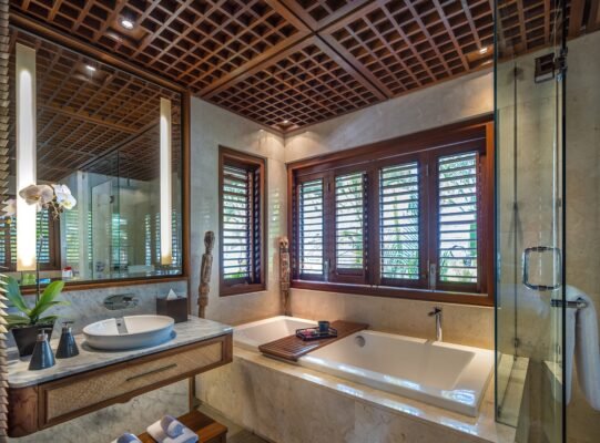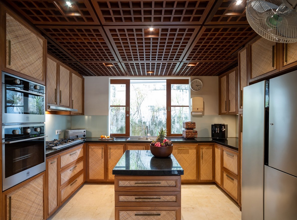 Set amidst lush tropical gardens, this elegant 5-bedroom villa surrounds a stunning 14-metre private pool with sun loungers perfect for soaking up the Bali sunshine.