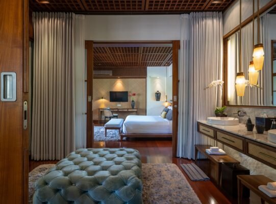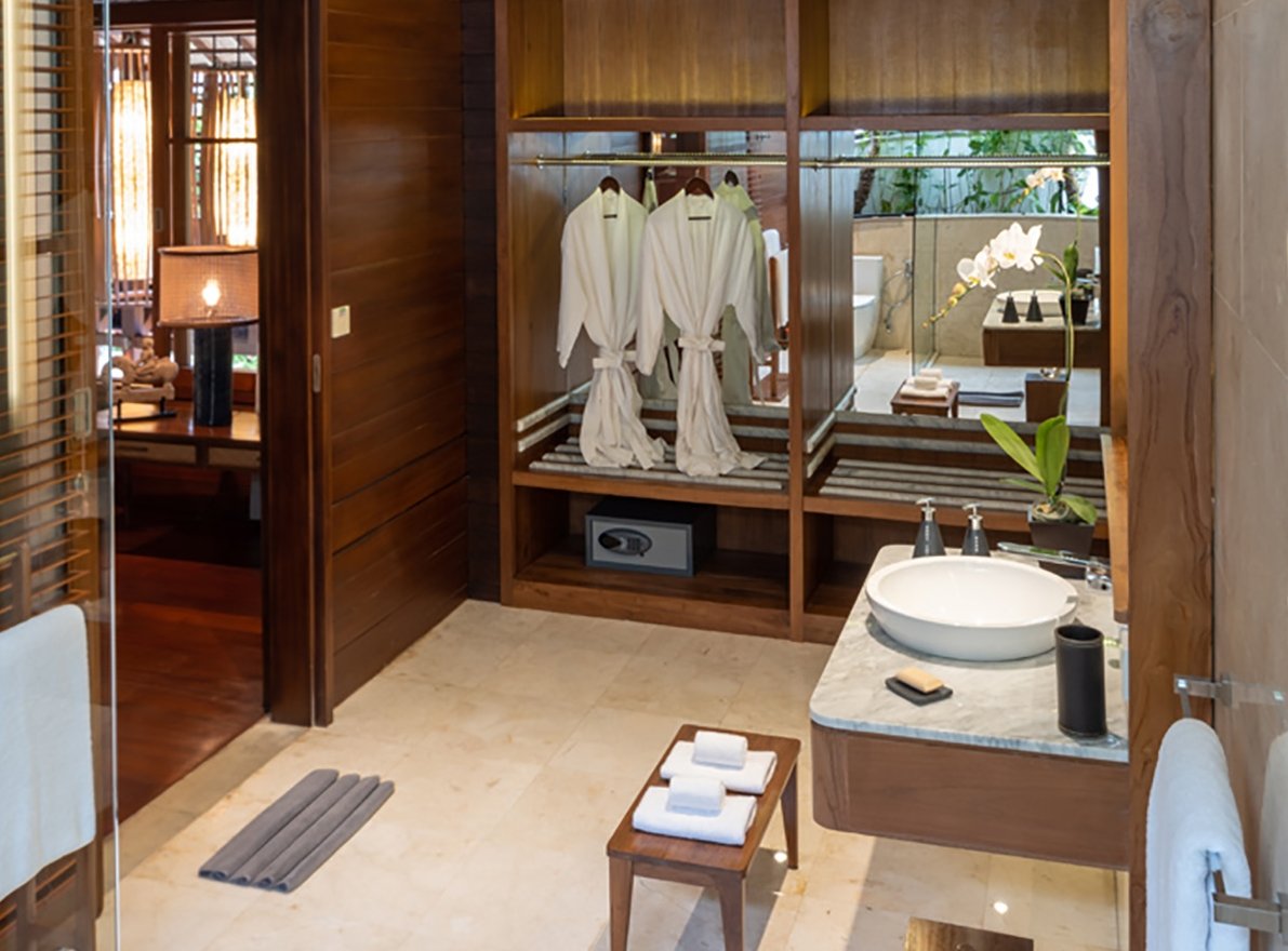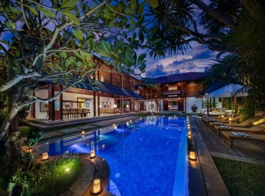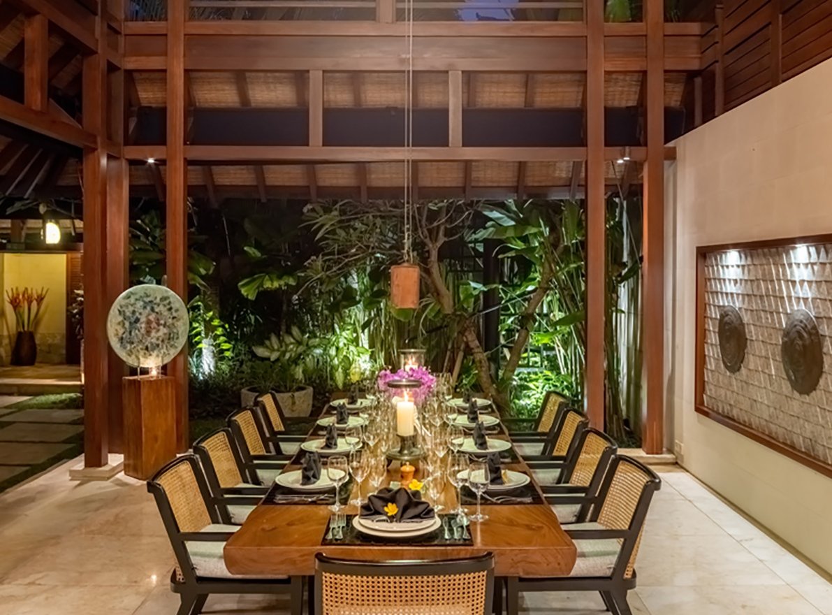 Villa is an elegant five-bedroom residence situated in a secure and private, gated estate in the heart of fashionable Petitenget on Bali's south-west coast. The villa is within walking distance, or a short taxi ride, of Legian beach and the many chic boutiques and restaurants.
