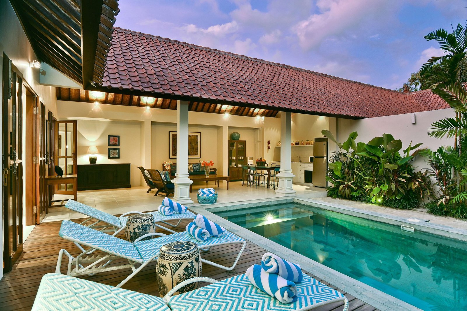 Tucked away in a quiet lane off the main streets of Seminyak, an idyllic paradise you will never want to leave. And with absolutely everything you need for a relaxing tropical getaway, why would you? Villa is a beautiful open plan villa with 3 bedrooms and a stunning landscaped pool all within short distance of the beach, bars and restaurants.